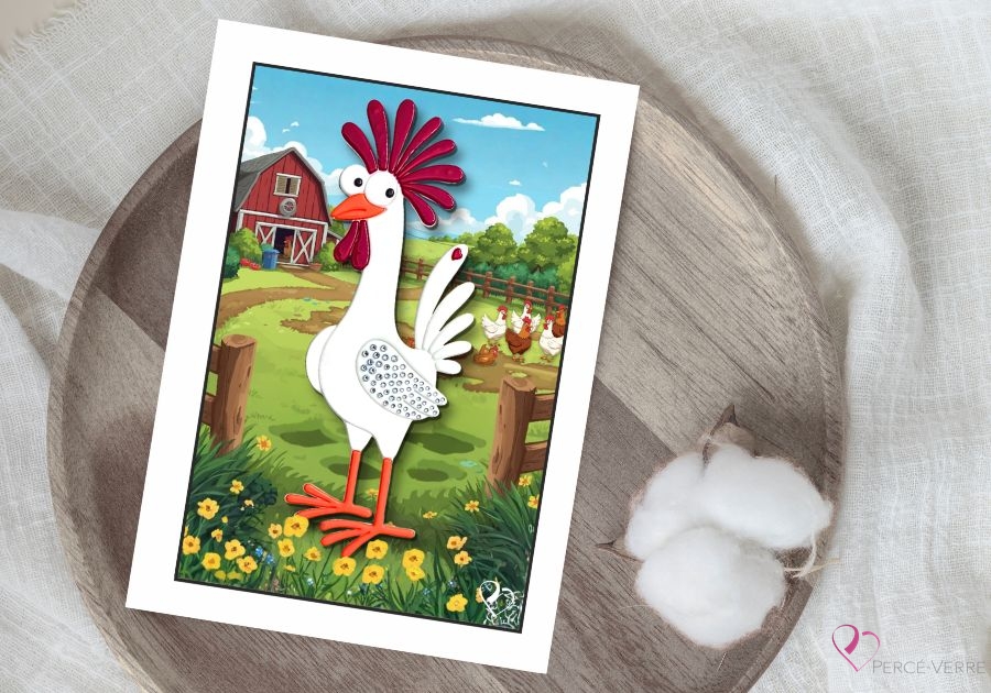 Chez Percé-Verre, chaque création est pensée pour ajouter un éclat de couleur et de joie dans la vie quotidienne. Cette carte de souhaits poule reflète l’authenticité, la créativité et la chaleur humaine qui font la signature de l’atelier.