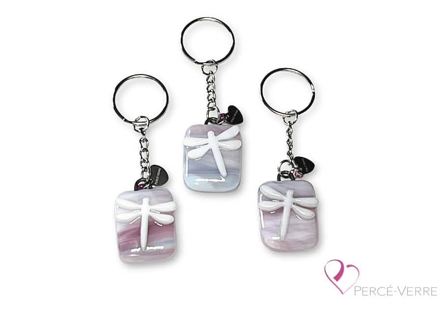 Fused glass dragonfly key ring, handmade in Quebec. Lightweight, colorful and unique. Perfect for keys, bags or as a small gift.