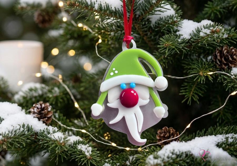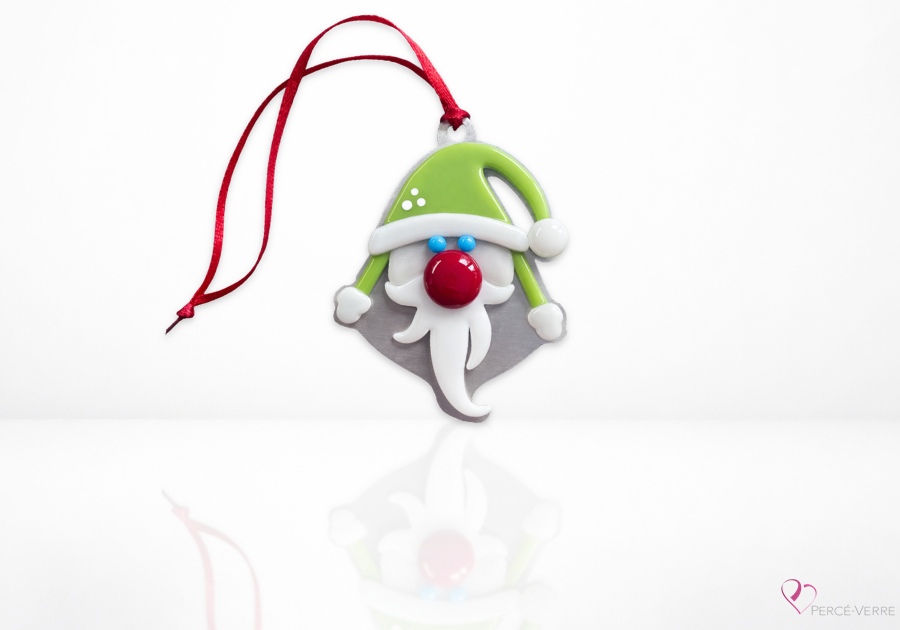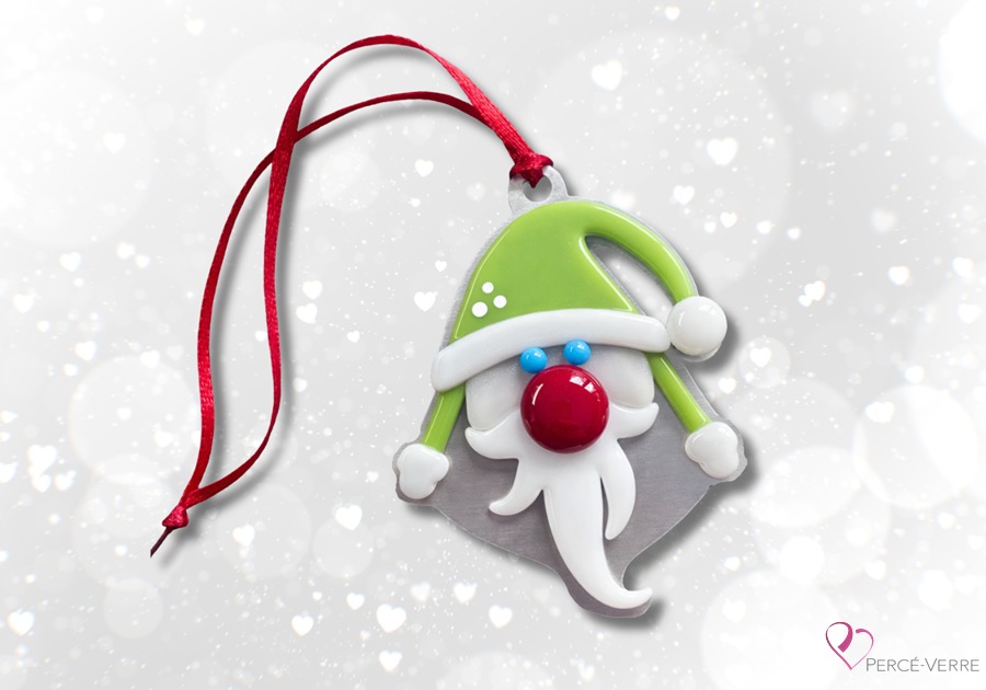 Quebec-made fused glass gnome ornament – The Christmas Gnome