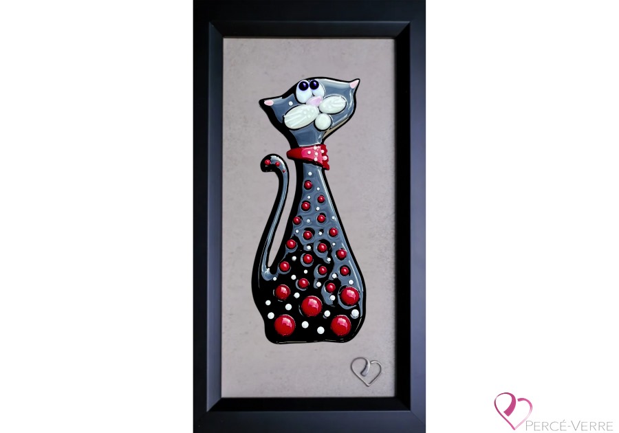 Tabasco is a lively kitten with a temperament as spicy as it is endearing. This fused-glass piece perfectly illustrates his tenderness, which is a little scratchy… but always sincere.