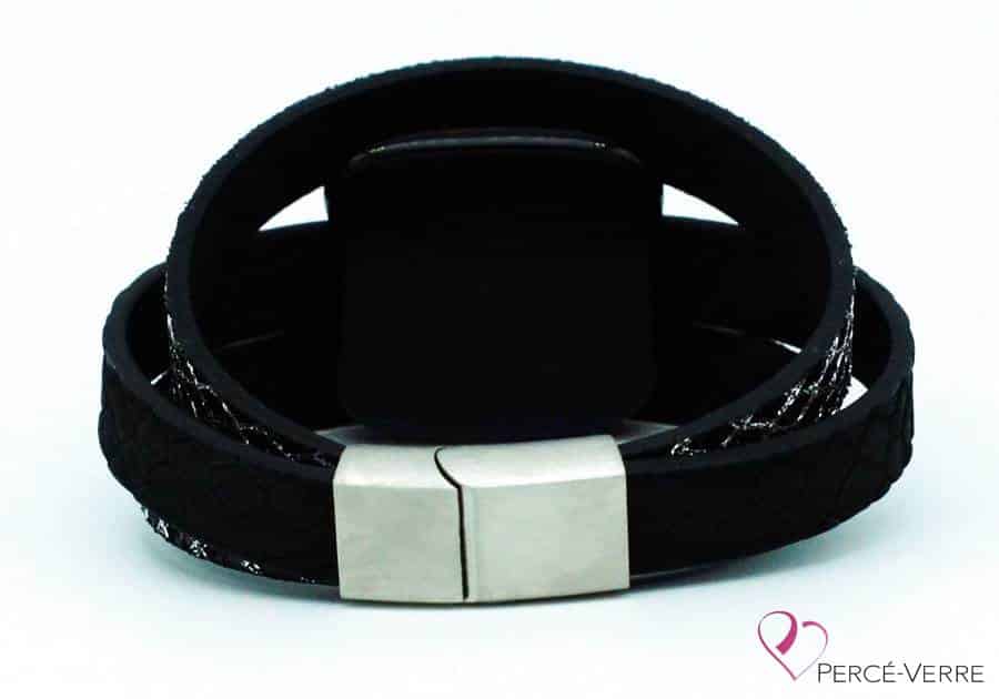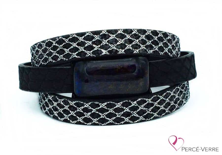 Silver and black leather bracelet for women with handmade fused glass insert. Add chic and boldness to your outfit with this unique piece that reflects your personality!