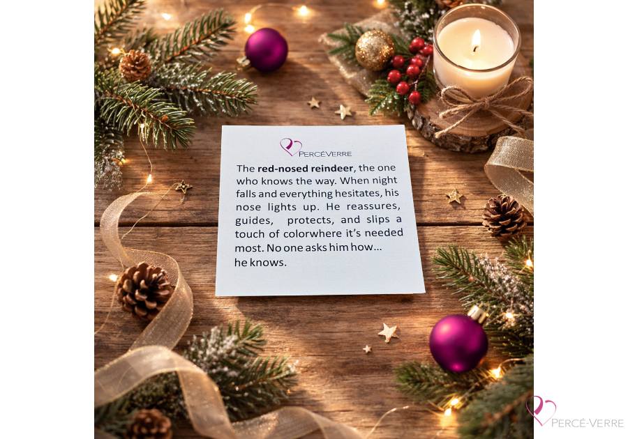 The reindeer with the red nose, the one who knows the way. When night falls and everything hesitates, his nose lights up. He reassures, guides, protects and adds a little color where it’s lacking. We don’t ask him how… he just knows.