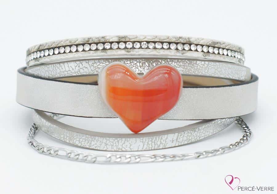 Valentine’s bracelet with glass jewel, handmade, heart-shaped! Valentine’s bracelets are available only until February 14 or while supplies last!