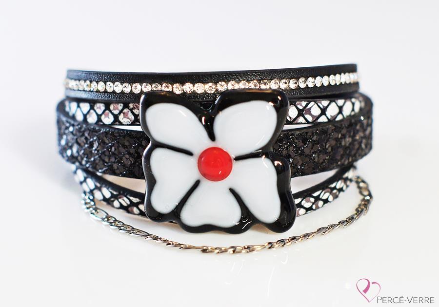 Bracelet pour femme en cuir et verre, Collection “Fleur” #162FR
