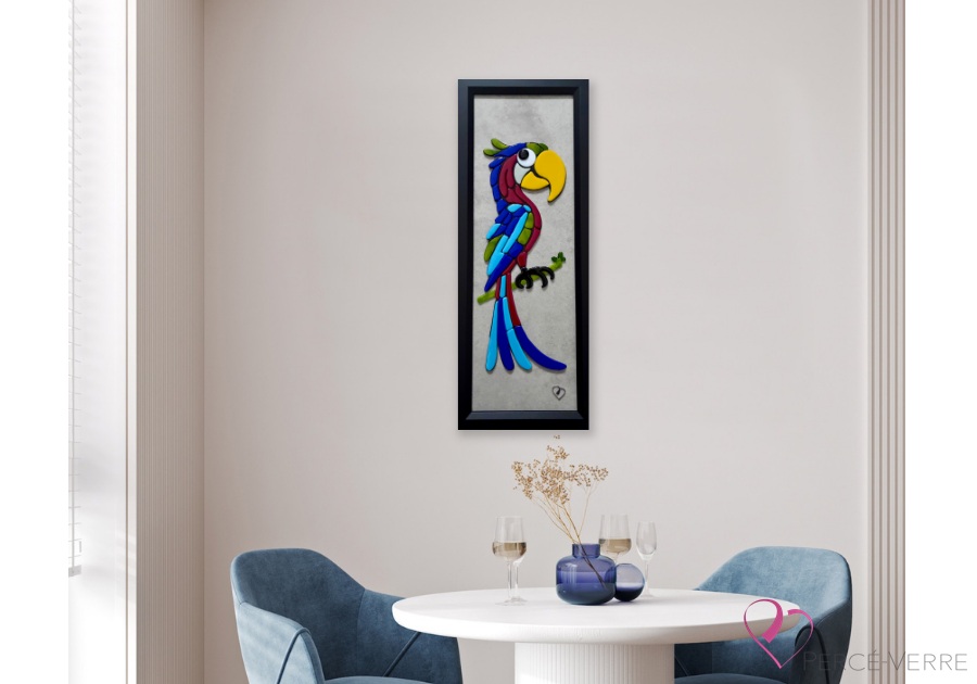 Ce perroquet décoratif en verre fusionné nous rappelle que même dans le silence, le mouvement continue, l’élan demeure, et que voler vers ses rêves ne fait pas toujours de bruit… mais laisse toujours une trace de lumière.