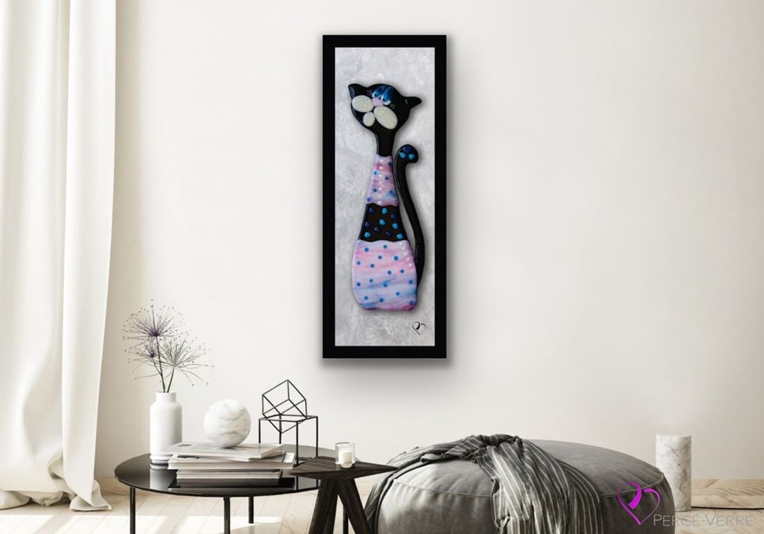 Plongez dans l’univers enchanteur de l’œuvre murale « Gertrude » de la collection Art Déco de Percé-Verre. Cette pièce d’art saisissante capture l’espièglerie féline dans toute sa splendeur, avec Gertrude, un chat malicieux dont le regard piteux ne manquera pas de vous arracher un sourire complice.