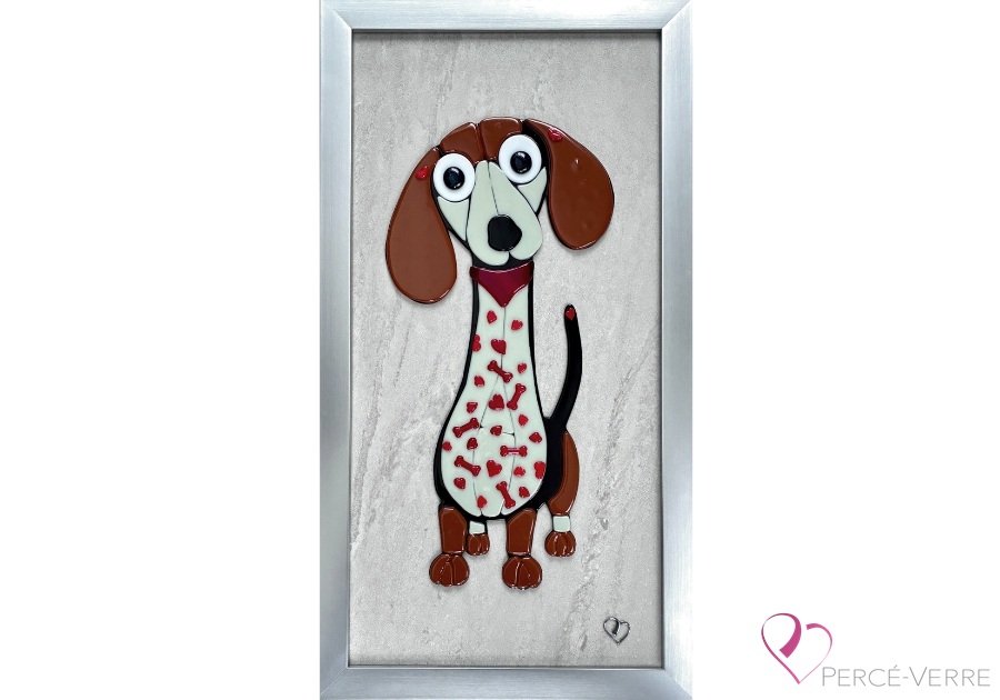 Toulouse est un chien saucisse en verre fusionné qui a choisi de suivre son cœur plutôt que les attentes. Une œuvre faite à la main au Québec, célébrant le bonheur, la générosité et la joie de vivre.